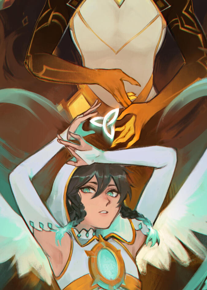 The 'future' section of the zine will feature Zhongli and Venti post-game, so of course children are allowed. However, to avoid confusion for the readers, both AUs and fan-children will be evaluated by the mod team on a case-by-case basis.